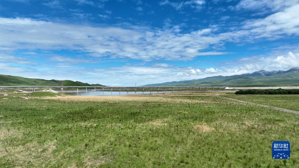 這是瑪曲縣城外黃河沿岸一處經過治理修復的草場(7月6日攝,無人機照片)。