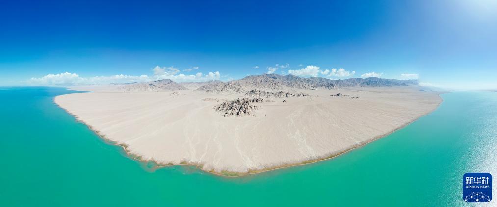 9月11日在阿爾金山國家級自然保護區拍攝的阿雅克庫木湖及周邊群山(無人機全景照片)。