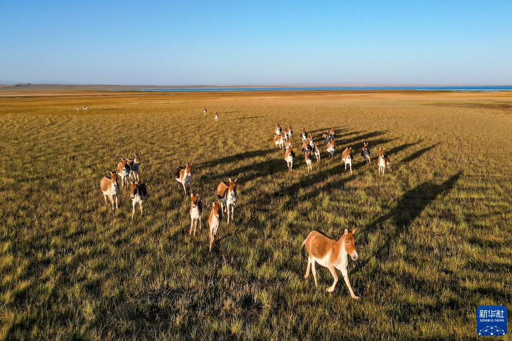 9月12日在阿爾金山國家級自然保護區拍攝的藏野驢(無人機照片)。