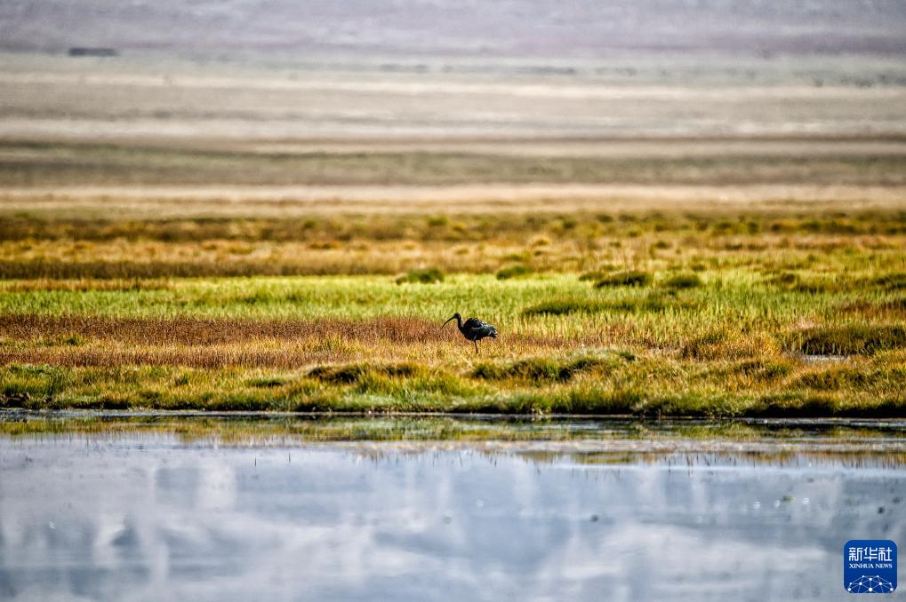9月14日在阿爾金山國家級自然保護區拍攝的黑鸛。