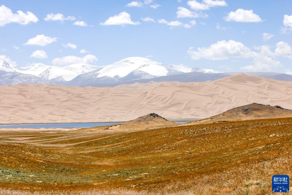 9月12日在阿爾金山國家級自然保護區拍攝的集草原、湖泊、沙漠、雪山於一體的自然景觀。