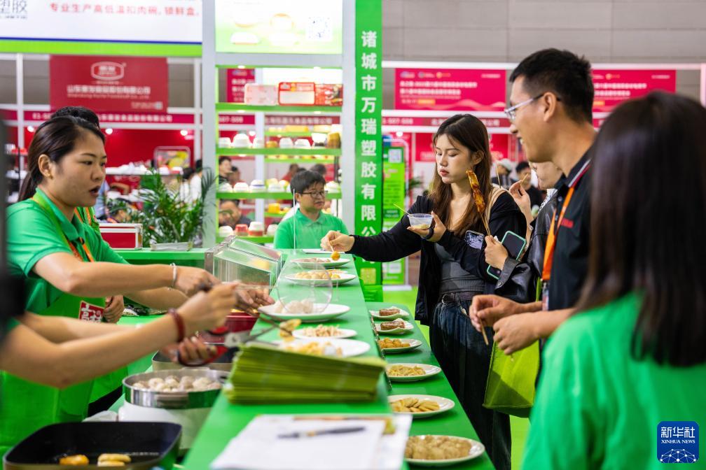 9月15日,在長沙國際會展中心,觀眾在品嘗小吃。