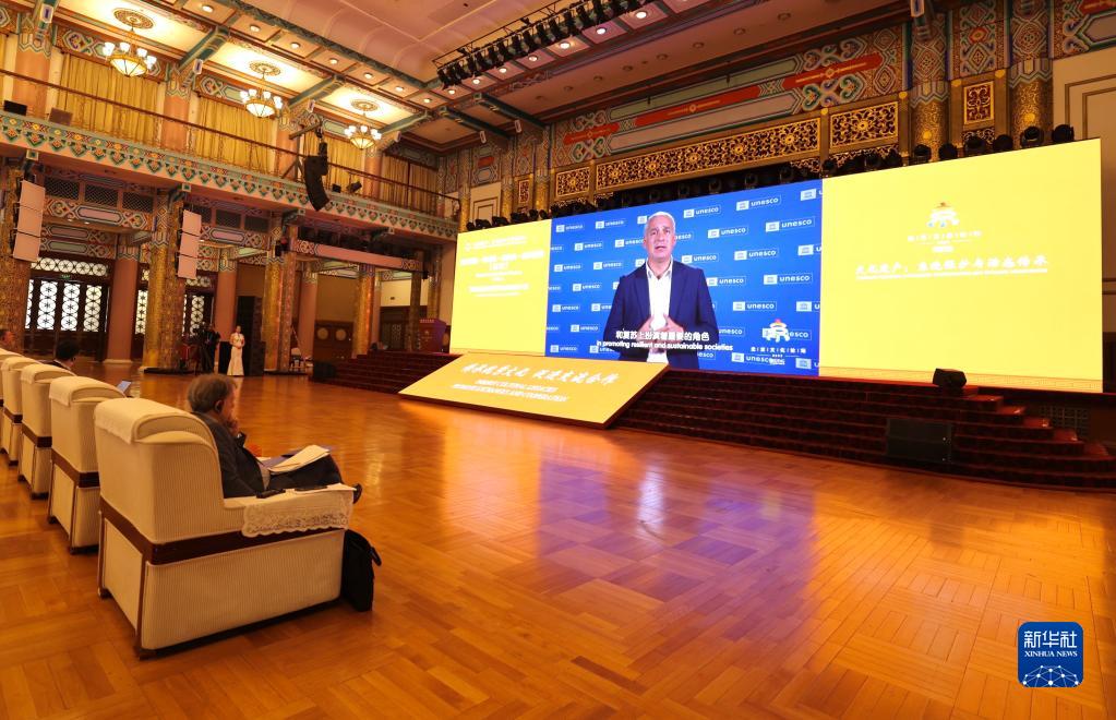 9月15日,聯合國教科文組織文化助理總幹事埃內斯托·奧托內在論壇上進行視頻演講。