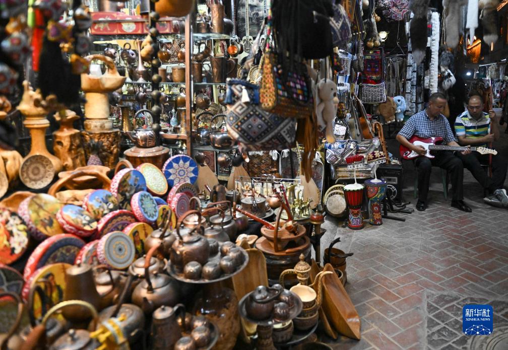 這是9月13日在新疆喀什古城景區拍攝的一處攤位。