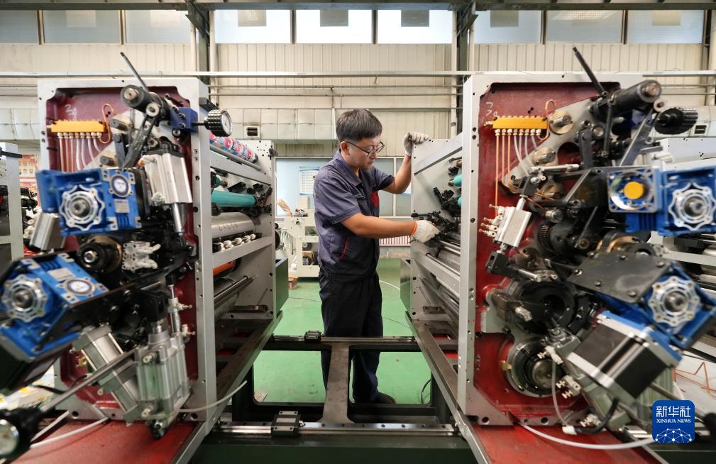 9月15日,位於玉田縣的河北萬傑機械科技股份有限公司工人在組裝印刷機械。