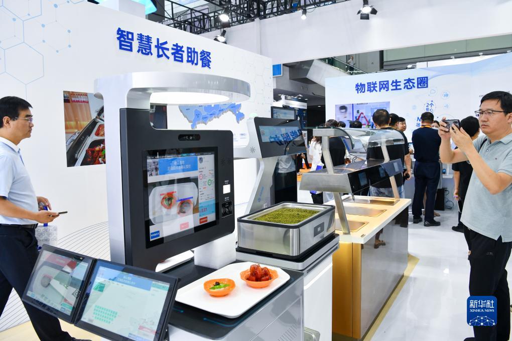9月15日,觀眾在深圳智慧養老展上了解智慧長者助餐系統。