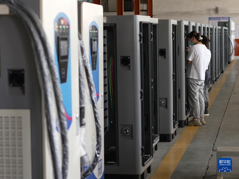 9月15日,工作人員在滄州智慧城科技有限公司生産車間對直流充電樁進行內部組裝作業。