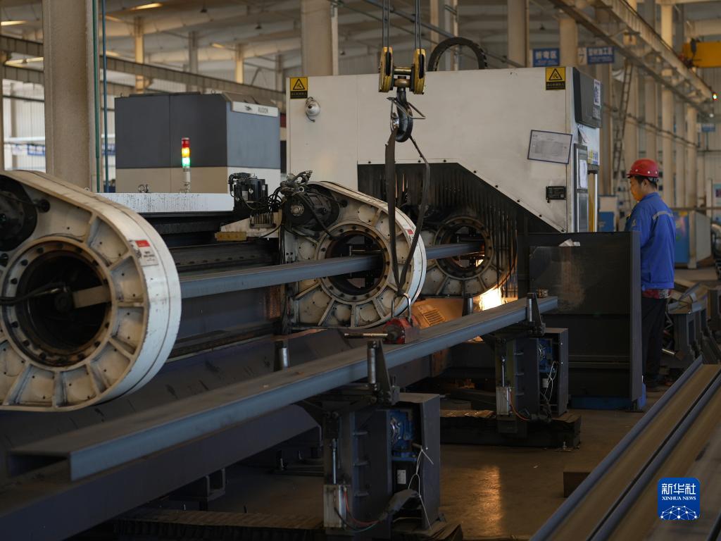 9月15日,工作人員在河北科源智能電氣有限公司生産車間操控設備對型材進行激光切割。