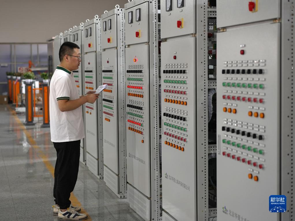 9月15日,在河北中電信普智能科技有限公司生産車間,質檢人員對配電櫃成品進行出廠前檢測。