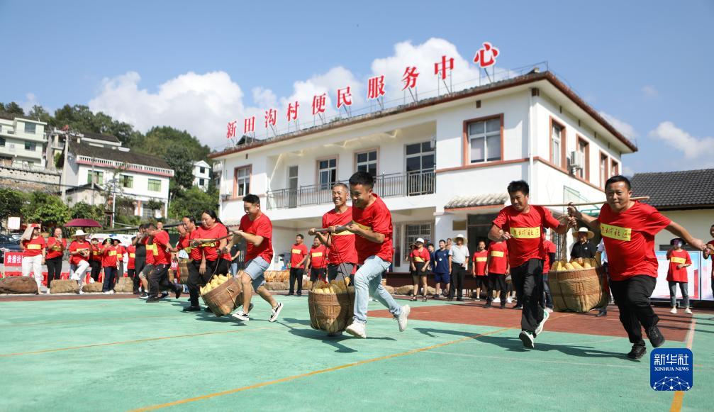 當日,一場農民趣味運動會在重慶市秀山土家族苗族自治縣洪安鎮新田溝村舉行。人們參加運苞谷、扎稻繩、吃西瓜等趣味項目,歡慶豐收。