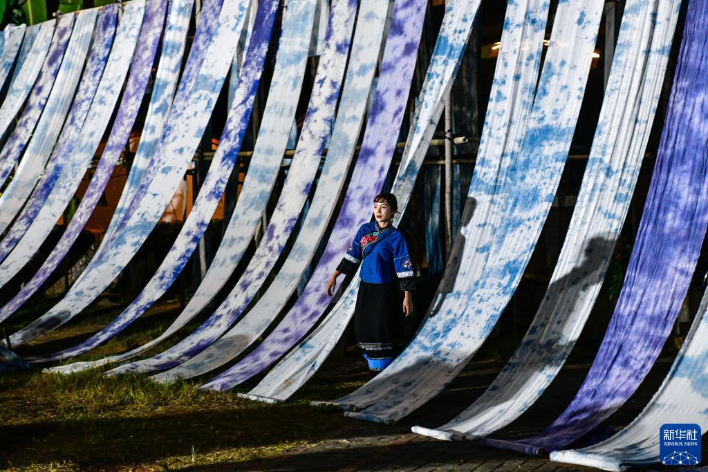 9月14日,村民在興義市萬峰林街道的“鄉愁集市”晾布現場忙碌。