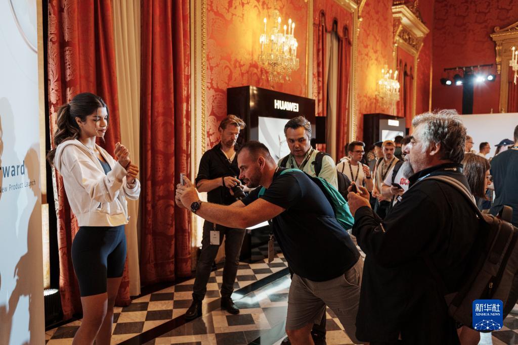 9月14日,在華為西班牙巴塞羅那新品發布會現場,與會者拍攝模特展示的最新穿戴産品。