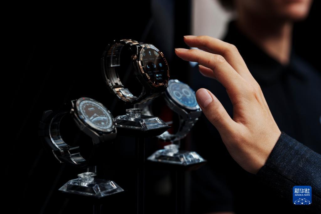 9月14日,在華為西班牙巴塞羅那新品發布會,與會者體驗新發布的WATCH GT 4系列手錶。