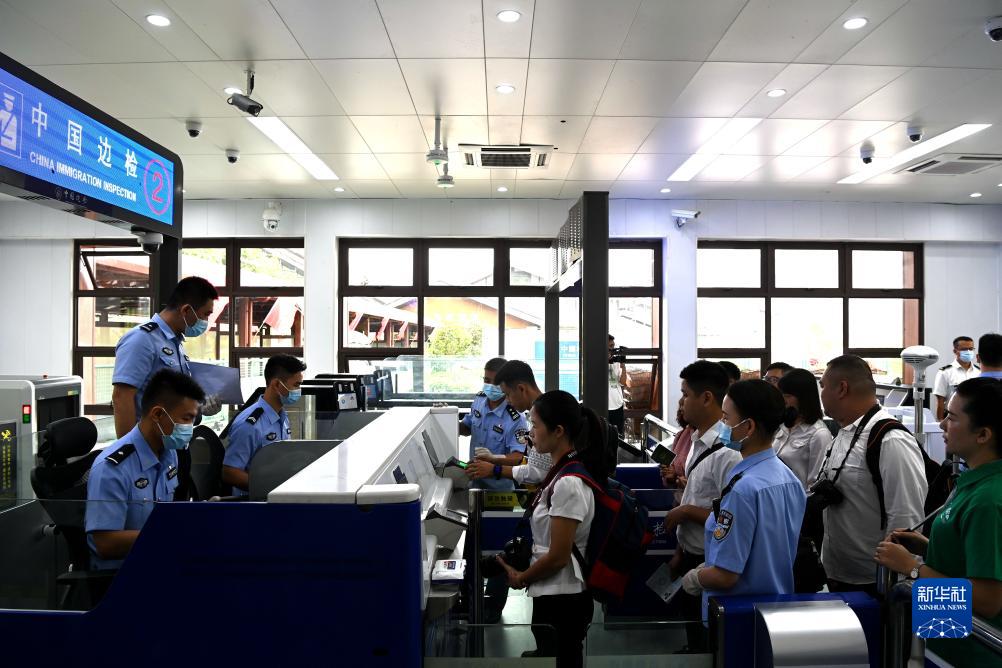 9月15日,在中越德天(板約)瀑布跨境旅游合作區,中國游客排隊通關出境。