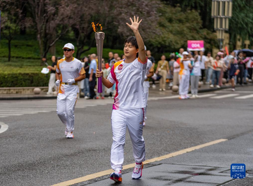 9月16日,火炬手彭雲飛在火炬傳遞中。