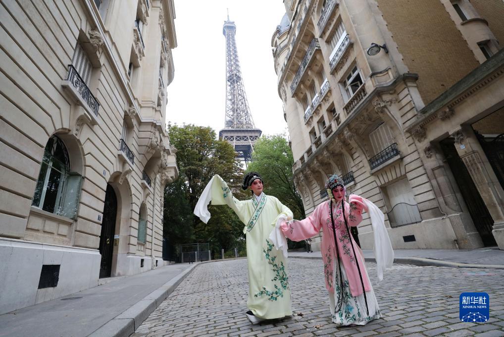 作為“文明遇·鑒:中國崑曲江蘇周”系列活動之一,江蘇省演藝集團昆劇院院長施夏明、江蘇省演藝集團昆劇院國家一級演員孔愛萍13日走上巴黎街頭,在著名地標建築前以“快閃”的方式展示崑曲藝術。
