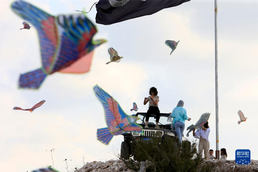 9月10日,黎巴嫩南部小鎮扎瑞耶舉辦風箏節,人們在戶外開闊地放飛風箏。