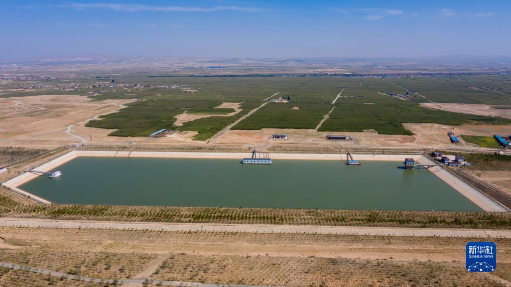 這是9月14日在寧夏吳忠市同心縣韋州鎮拍攝的蓄水池(無人機照片)。
