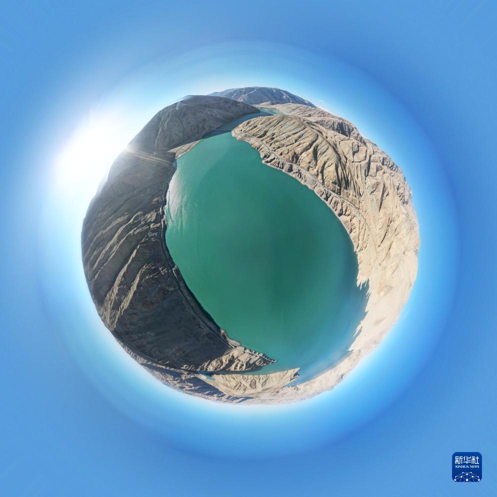 位於新疆塔什庫爾幹塔吉克自治縣的下坂地水利樞紐工程(9月5日攝,無人機全景照片)。