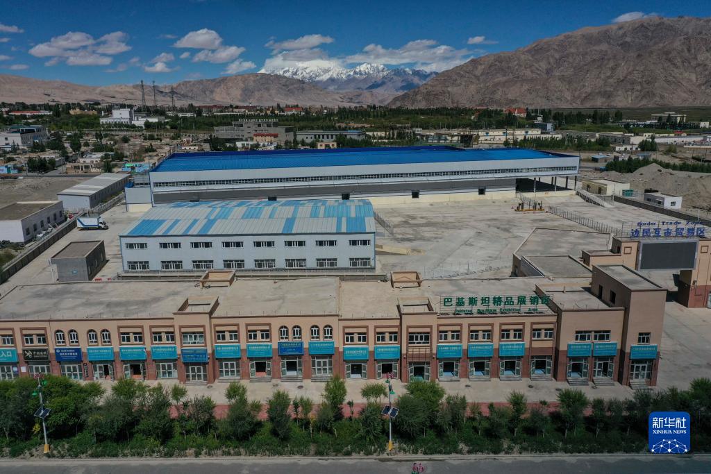 位於新疆塔什庫爾幹塔吉克自治縣的中巴邊民互市貿易區(8月28日攝,無人機照片)。