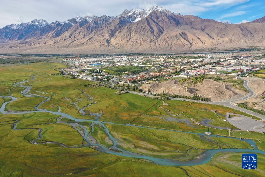 新疆塔什庫爾幹塔吉克自治縣縣城風貌(8月28日攝,無人機照片)。