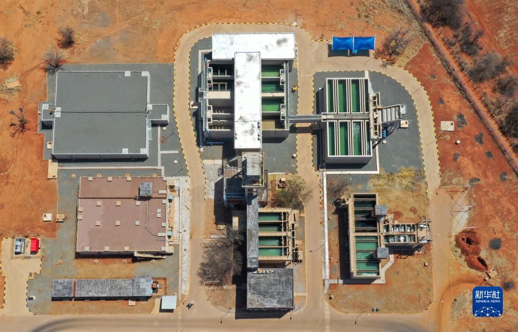 這是9月12日在博茨瓦納馬哈拉佩拍攝的自來水廠(無人機照片)。