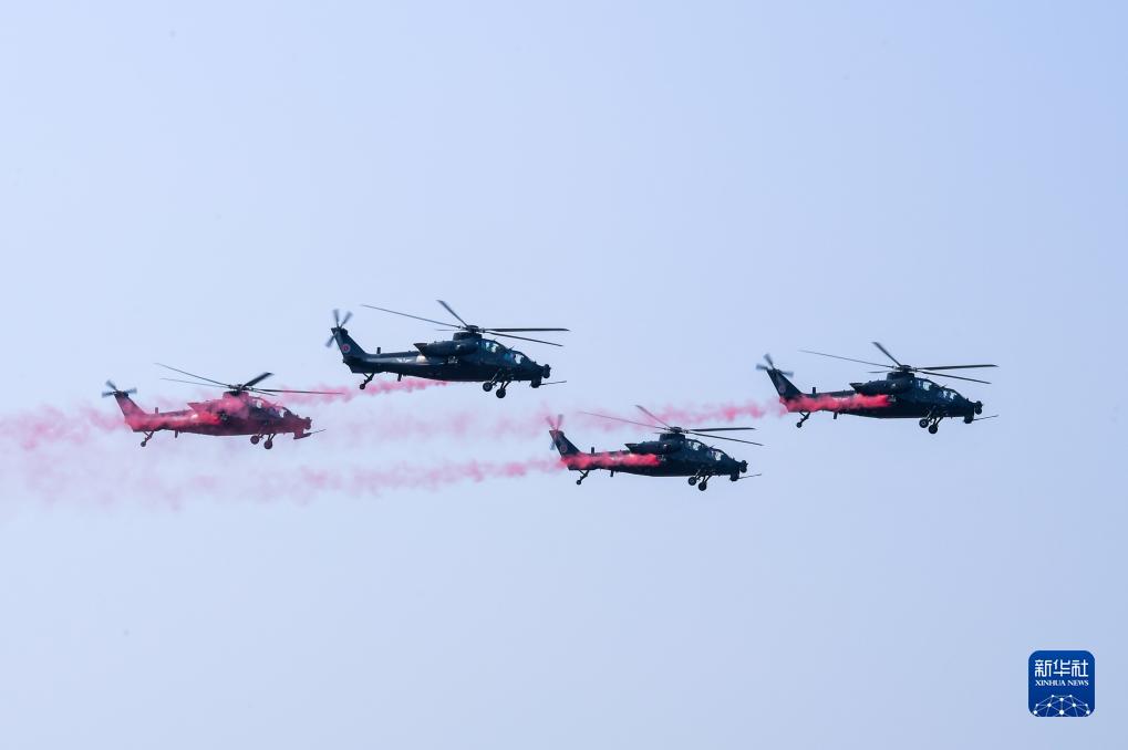 9月16日,陸軍“風雷”飛行表演隊直-10武裝直升機進行飛行表演。