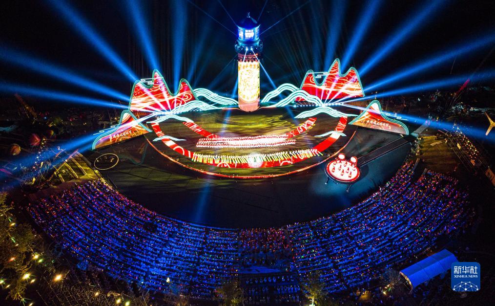 9月16日,觀眾欣賞第十四屆中國長江三峽國際旅游節開幕式錶演(無人機照片)。