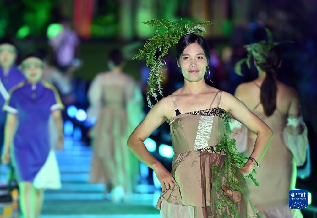 9月16日,海南省五指山市暢好鄉的居民展示黎族創意服飾。