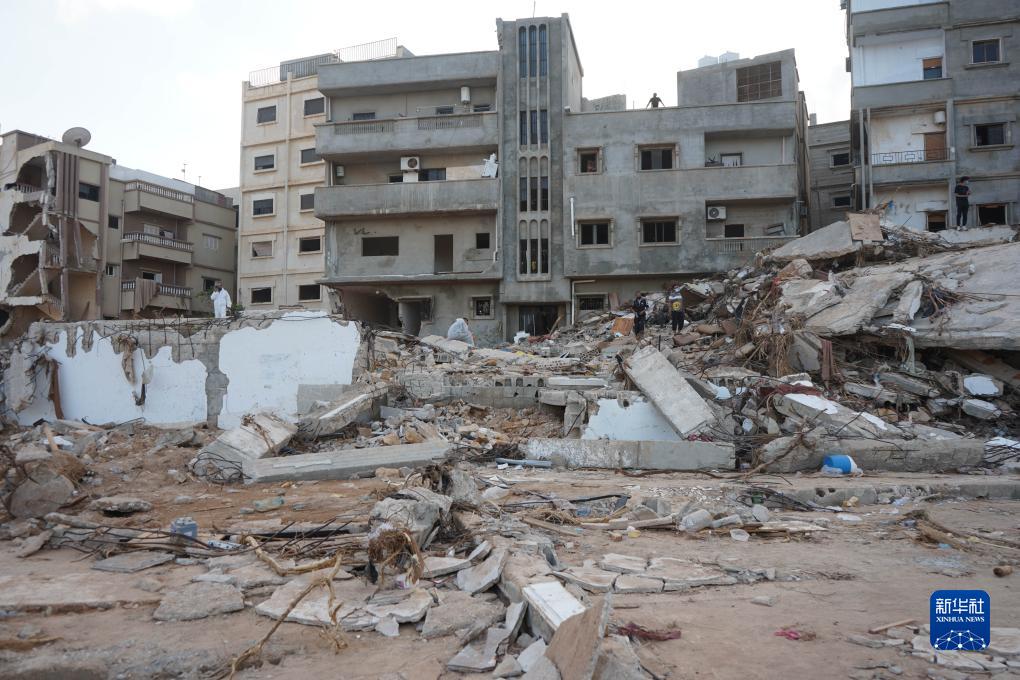 這是9月16日在利比亞德爾納拍攝的受損的建築。