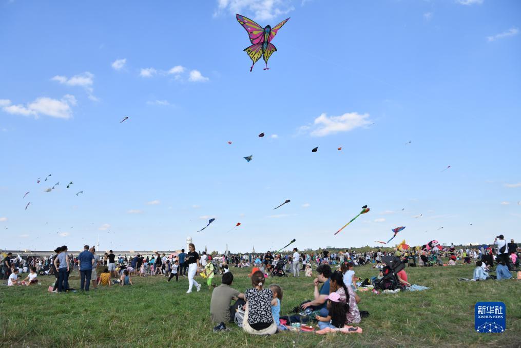 當日,德國柏林舉行2023年巨型風箏節。現場放飛了章魚、青蛙、金魚、小熊等造型的巨型風箏,還吸引眾多市民前來放風箏。