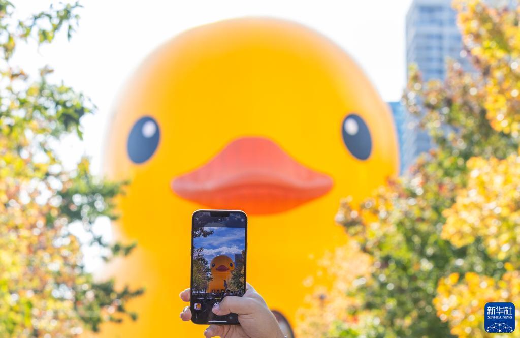 當日,一隻6層高、重約13.6噸(30000磅)的橡皮“大黃鴨”亮相多倫多,吸引了眾多游人。這是“大黃鴨”繼2017年後再次來到多倫多,從9月16日至17日向公眾開放。