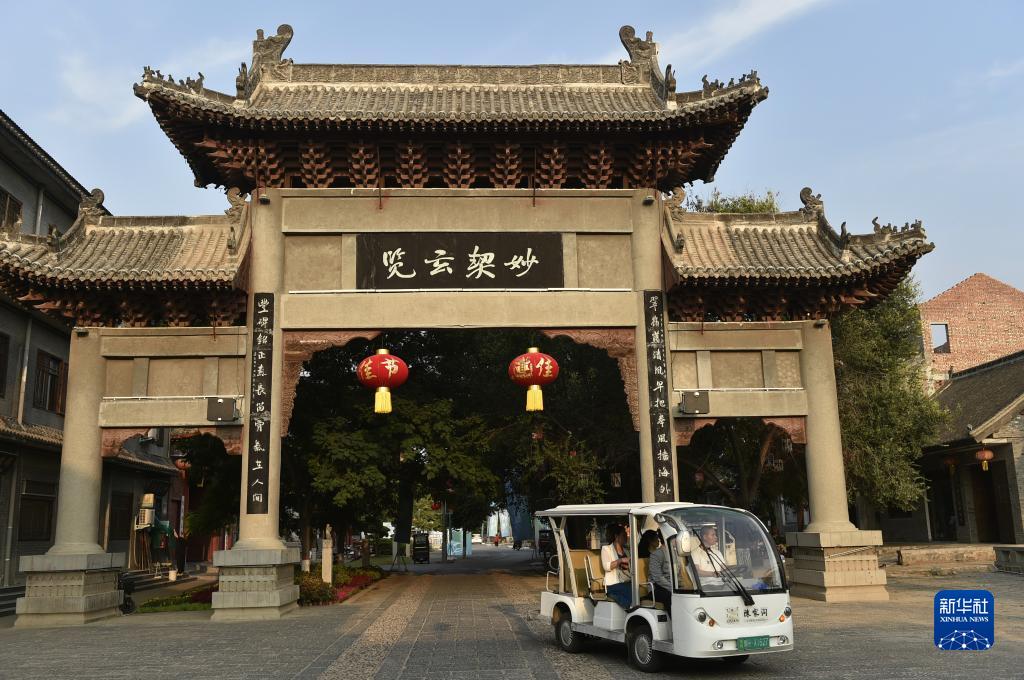 9月15日,游人乘坐電瓶車在河南溫縣陳家溝游覽。