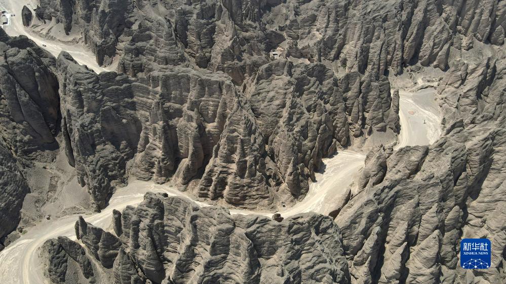 這是位於甘肅省白銀市景泰縣中泉鎮龍灣村的黃河石林景觀。黃河石林千峰競奇、峽谷蜿蜒,與黃河遙相呼應,形成山環水轉、動靜結合的自然奇觀(7月11日攝,無人機照片)。