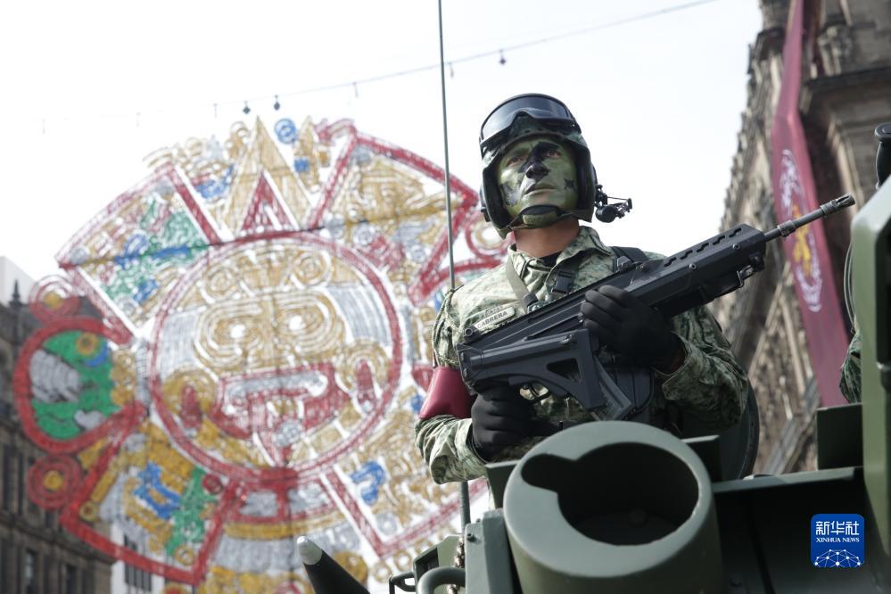 當日,墨西哥在首都墨西哥城的憲法廣場舉行閱兵式,慶祝獨立213周年紀念日。