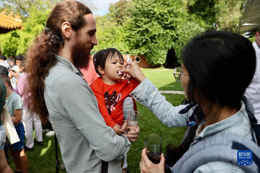 9月16日,小朋友在比利時布魯塞爾的中國使館開放日活動上品嘗美食。