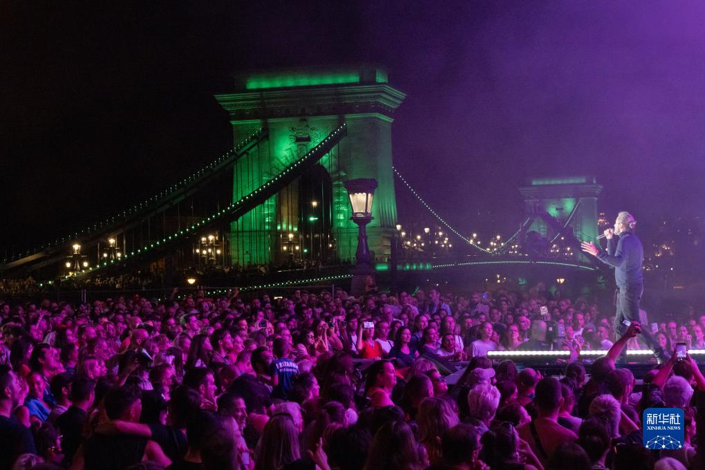 9月16日,人們在匈牙利首都布達佩斯著名地標鏈子橋畔欣賞音樂會。