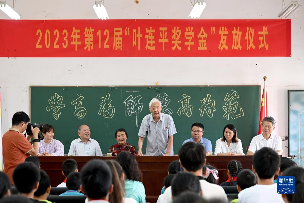 9月17日,第十二屆“葉連平獎學金”發放儀式在安徽省馬鞍山市和縣卜陳學校舉行,共計為37名中小學生發放46600元獎學金。今年96歲的葉連平是卜陳學校的退休教師,2000年,他在自己家裏開辦了“留守未成年人之家”,利用周末和寒暑假為農村學生免費補習英語。2012年,葉連平同烏江鎮政府、卜陳學校三方籌款6萬元,成立了和縣烏江愛心助教協會暨葉連平獎學金,12年來為300多名農村孩子累計發放獎學金37萬餘元。