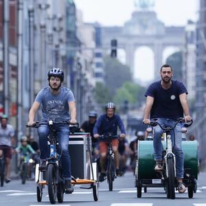 9月17日,人們在比利時布魯塞爾的“無車日”騎自行車出行。
