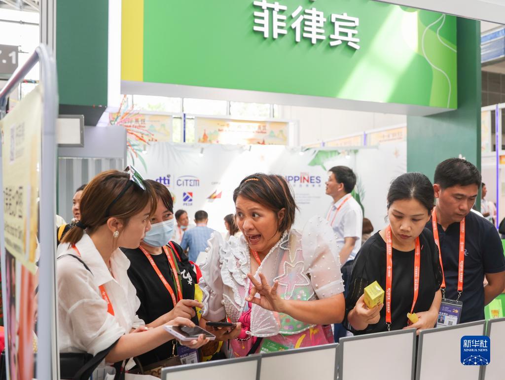 9月17日,在南寧國際會展中心,觀眾在東博會上選購菲律賓護膚品。