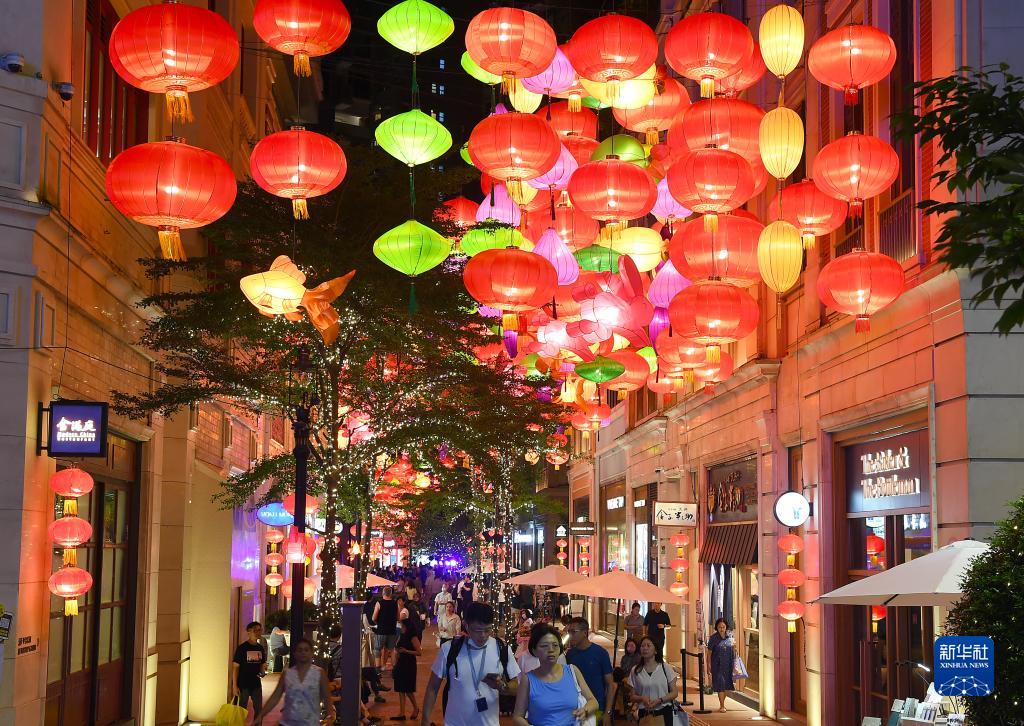 為迎接中秋佳節的到來,香港利東街舉辦“躍兔·迎月”戶外綵燈會。約200米長的林蔭大道懸挂起800多個五彩繽紛的中式燈籠,營造出喜慶的佳節氣氛。