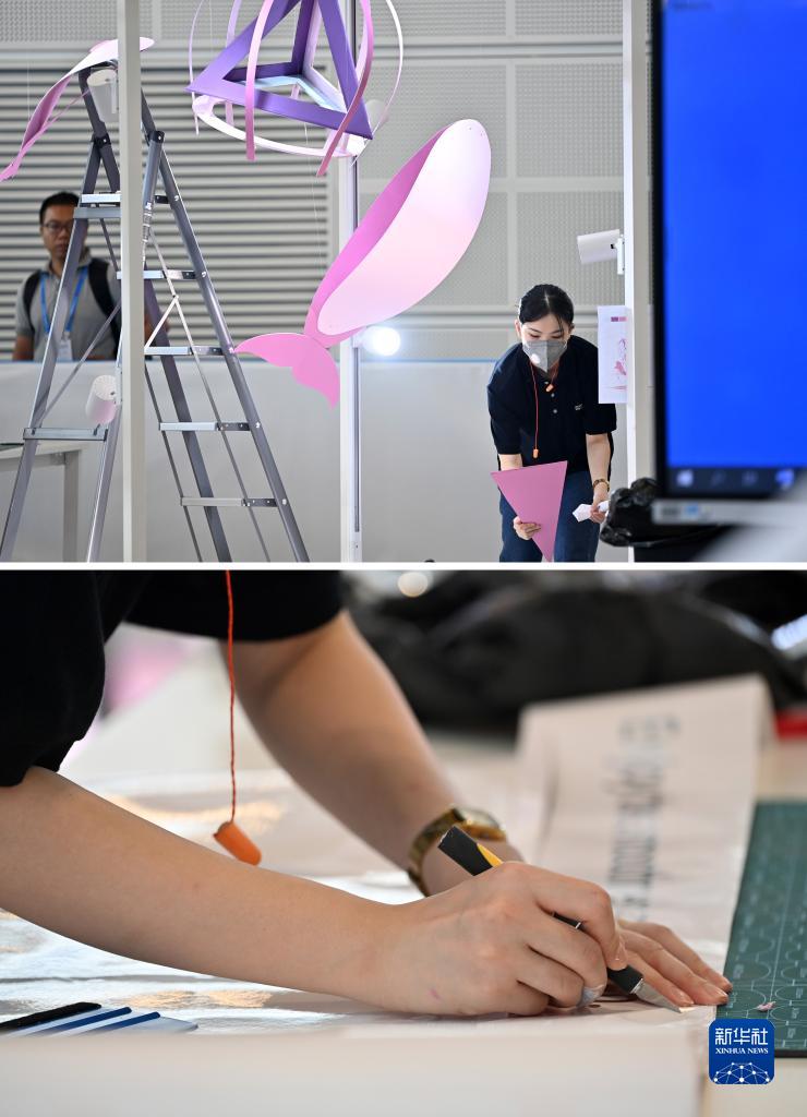 9月18日,選手在國家會展中心(天津)參加商品展示技術項目的比賽(拼版照片)。