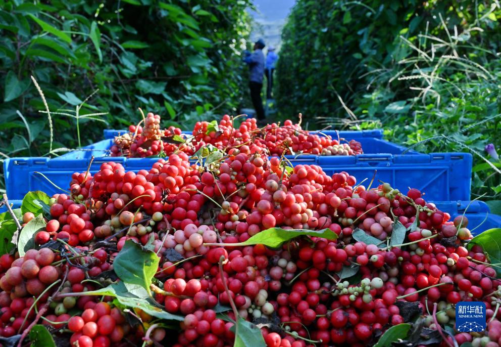 9月18日,唐山市豐潤區火石營鎮東高莊村的農民採摘五味子。