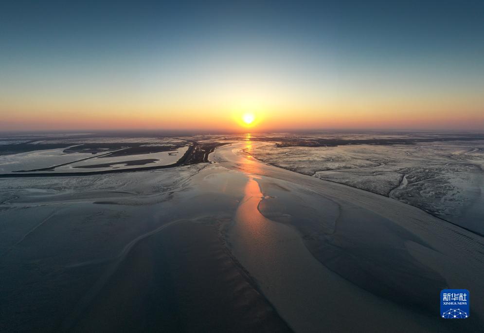 夕陽下鹽城東&條子泥濕地景色(2023年9月1日攝,無人機照片)。
