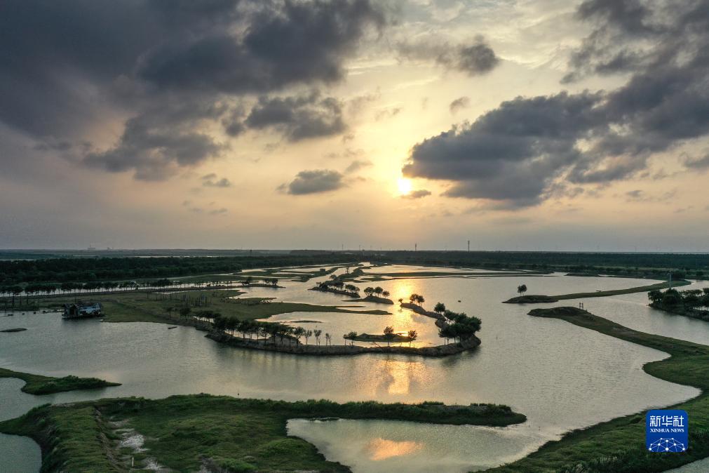 這是位於江蘇鹽城的大豐麋鹿國家級自然保護區野鹿蕩景色(2023年8月20日攝,無人機照片)。