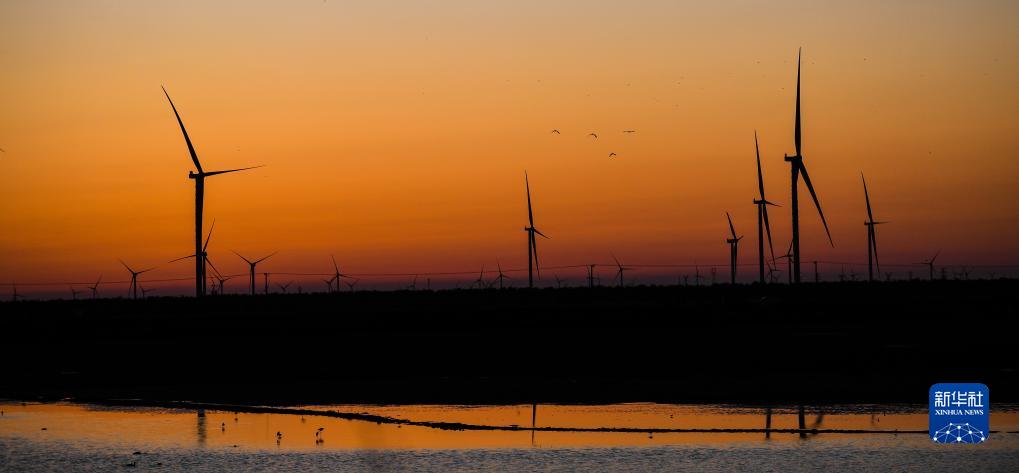 這是鹽城東&條子泥濕地日落景色(2023年8月31日攝)。