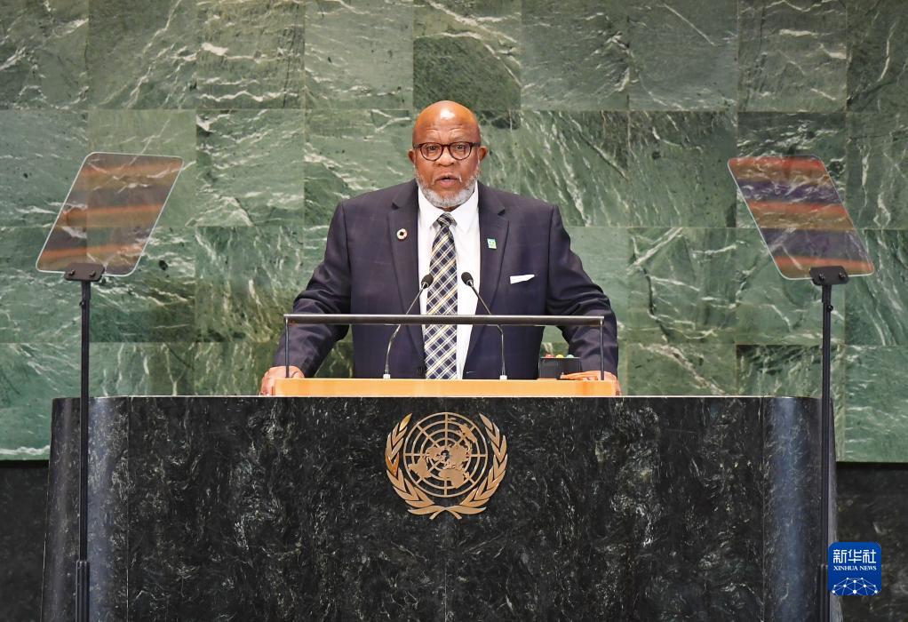 9月18日,在位於紐約的聯合國總部,第78屆聯大主席弗朗西斯在聯合國可持續發展目標峰會上講話。
