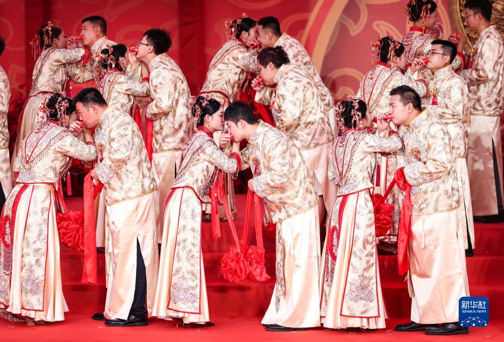 當日,在成達萬(成都經達州至萬州)高速鐵路四川省蓬安縣燕山寨隧道口的施工工地,來自中鐵三局五公司各建設工地的38對新人,身着中國傳統婚禮服飾參加集體婚禮。
