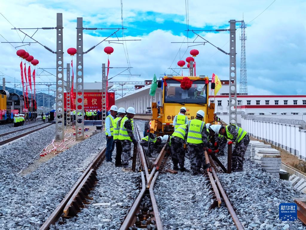 9月19日,在雲南省迪慶藏族自治州香格里拉站施工現場,隨着最後一對500米長鋼軌精準落在道床上,滇藏鐵路麗江至香格里拉段全線鋪軌完成,為年內開通運營奠定堅實基礎。麗香段開通運營後,迪慶藏族自治州將結束不通鐵路的歷史。