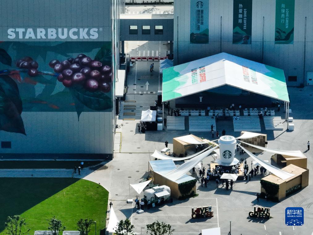 星巴克中國咖啡創新産業園開園儀式現場(9月19日攝,無人機照片)。